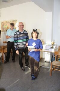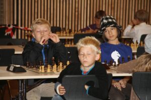 Emil Skovgaard var længe med fremme, men et ærgerligt nederlag i sidste runde ødelagde til dels hans turnering. Emil fik 3½/7 og det er et fint resultat at blive nr. 11 når man er seedet til en 12. plads. Sanschiro Kræmmer fik også en god turnering med 4 point og en 11. plads. Han fik en god slutspurt med 3p. af 4 og kan også være tilfreds med at få 1 point over forventet score. Vores juniorklubs bedste spiller Andreas Skovgaard var seedet til en 10. plads men fik en flot 5. plads med 5 point af 7. Hans score var 1½ point over forventet, hvilket siger meget om hvor stærke hans modstandere var. Andreas går heldigvis stadig forrest, når det gælder om at koncentrere sig og spille godt til de store turneringer.